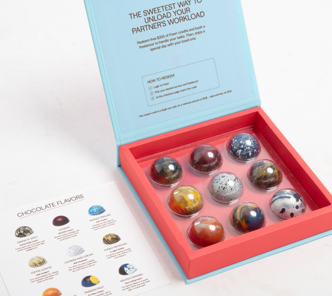Nothing says ‘I love you’ like hiring someone else to do the work. Campaign and The Drum highlighted how Fiverr sweetened Valentine’s Day with its Box of Freelancers — gourmet chocolates hiding $300 in credits, so your overworked partner can finally put down the laptop and show up for date night.